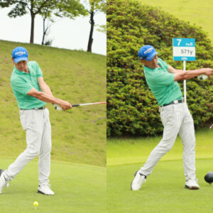 ドライバー専用のスイングは、大きくて重心距離の長いヘッドを、フェースが開かないように扱う要素を盛り込んでいきましょう。