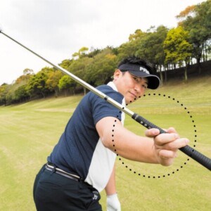 僕が高校生のころからやっているのが「小さい振り幅で目いっぱい飛ばす」という練習です。まずはショートアイアンを使用し、腰の高さの振り幅で最大の飛距離を出す。これにより、ムダな動きが取り除かれ、体が効率よく動きます。