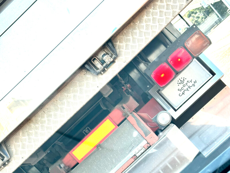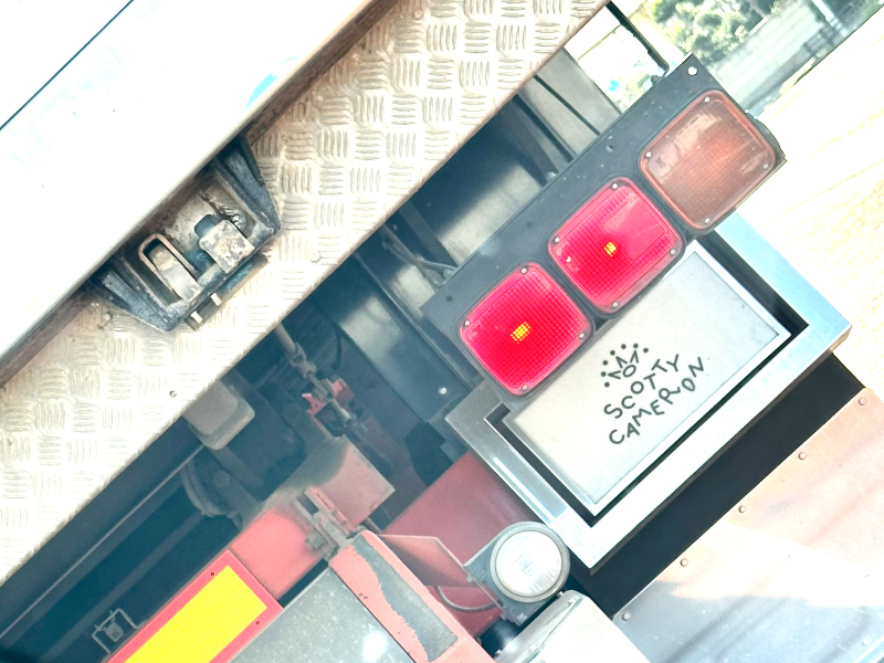 後日、トラック運転手のゴルフ仲間に写真を見せてみると、ここには普通、トラック愛好会のサークル名なんかを入れるそう。そこに「スコッティ・キャメロン」を入れるなんて、当然、使っているパターはキャメロンで間違いないはず。やはり王道で人気のニューポートかニューポート2の愛用者か、クラシックなプレミアモデルももっているかも、意外にもファントムの使い手だったりして、など想像を膨らませながらの運転は渋滞を忘れさせてくれる楽しさがありました。