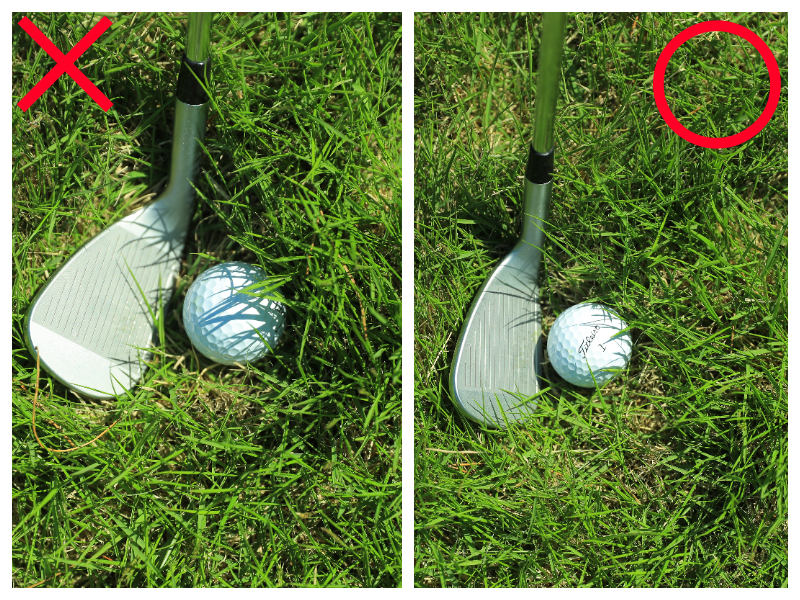 順目のときは開いてもいいが、逆目はフェースをスクエアにセットするのが基本