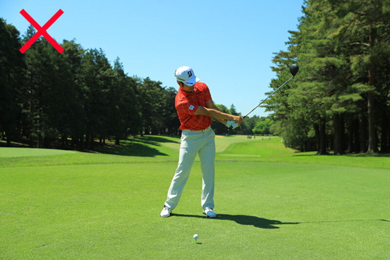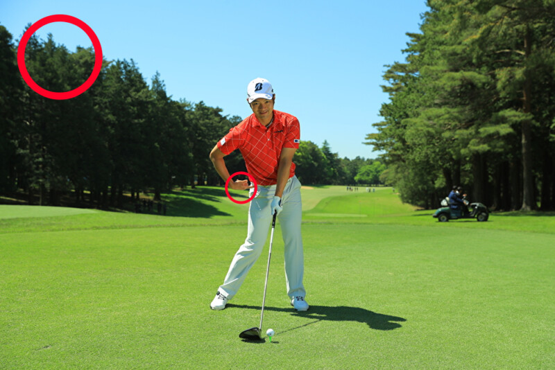 高くティーアップしたボールをレベルブローでクリーンに打つイメージなら芯でとらえられる