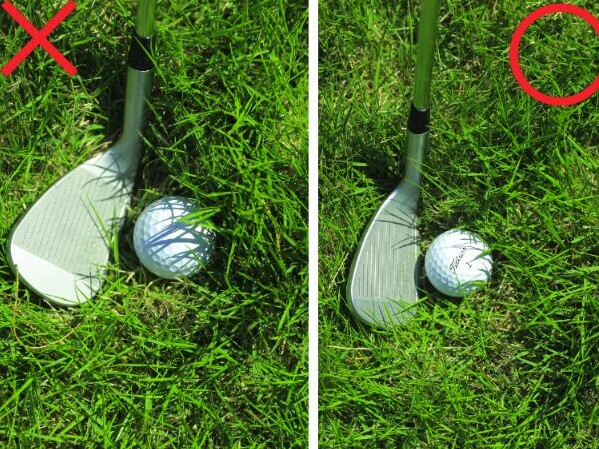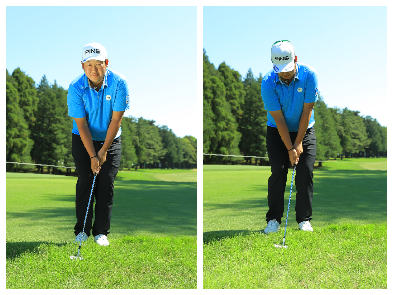 パットのように、クラブを吊る感じでハンドアップにして、フェースのトゥ側が地面に触れるように構える