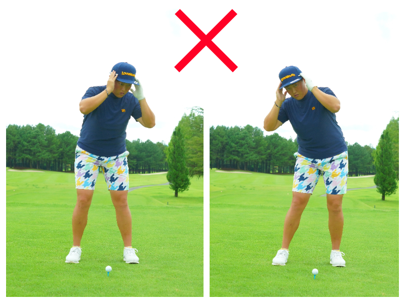 アドレスからインパクトまで、頭の位置が変わらないように注意。軸を意識してシャープに回転しよう