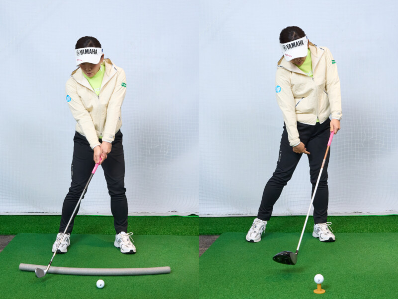 「最高のショットよりも、最低のショットを打たないことが大切です」と有村。そのためにしてほしいのが、ボールの前後50センチくらいのクラブ軌道の確認だ。とくに各ホールの1打目で使うことが多いドライバーはプレーのいい流れを作るためにも練習しておこう。