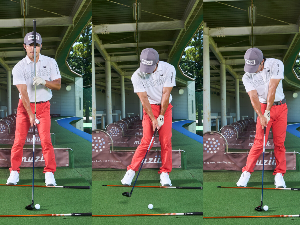 クローズスタンスは上体の軸が地面と垂直になり、スイング中にもその軸の傾きを保つのが容易になります。軸が右に倒れるのも防げるため、ヘッドの入射角はダウンブローに。すると、クラブのロフト角が立って当たるのでインパクトが厚くなる。ボール初速が上がるなど打球が強くなり、飛距離が伸びる弾道になります。