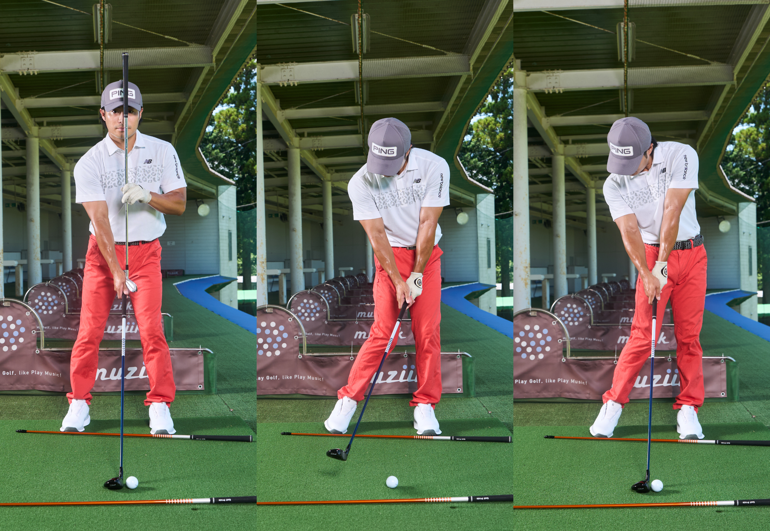 そこで1度「スタンスの適正診断」をしてみましょう。その診断方法はとても簡単で、オープンとクローズにしたスタンスで3球ずつ打つだけ。どんな結果になるかで、あなたのスイングも球筋もよくするスタンス向きがわかりますよ!(遠藤)