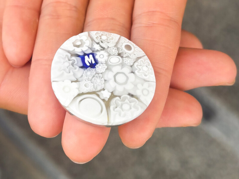 「このボールマークは沖縄で見つけたものなんですけど、フランス製みたいなんです」と、そのデザインの良さにご満悦。小さな貝殻を集めて作ったようなデザインの中にMの一文字。まるで勝のために作られたようなボールマークだ。