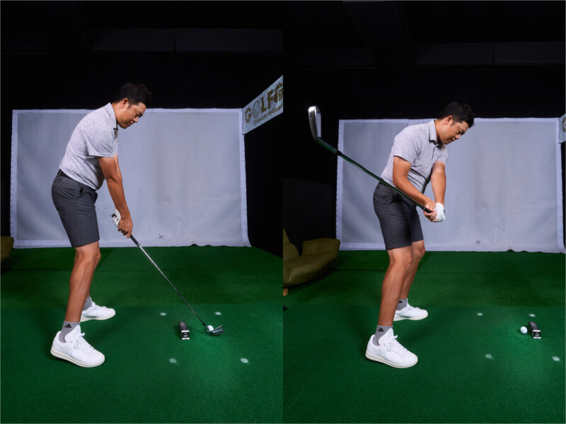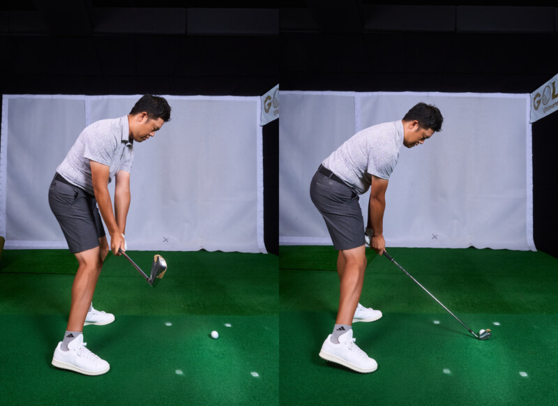 スイングは自然にヒール側でヒットしやすい「手元を低く下げた」打ち方になる