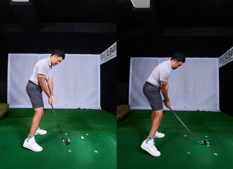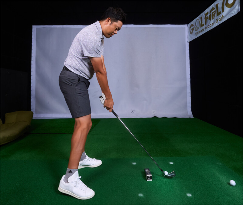 フェースのトゥ側やヒール側に打点がズレてミスヒットしてしまうのも“当て感”の悪さのひとつ。これは視覚的効果を使うと簡単に直る、鍛えられます。