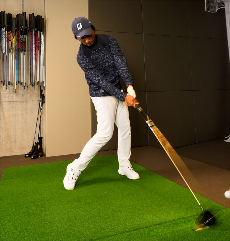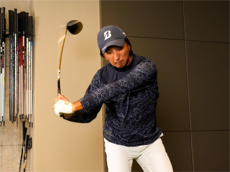 切り返し以降、中間から先がスイングに対してタイムラグなくついてきてくれるので、振り遅れることがない。シャフトの挙動を分析するSLAPで計測した結果「手元にあまり負荷をかけない“スインガー”系の人により合っていそうですね!」と奥嶋。タメを作るのが苦手なアマチュアにも扱いやすいというのが、データからもあきらかになった