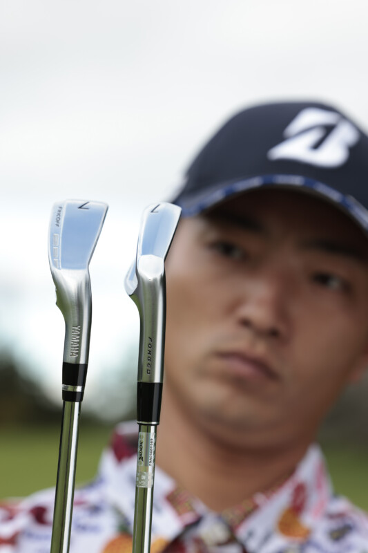 以前のアスリート系アイアンは直進性や高初速を求めて、右寄りのボールをスピンを入れやすいダウンブローで打つ必要がありました。しかし、ダウンブローで打つのはリスクが高く、球がつかまりすぎたりボールを点で狙わなくてはいけないので、上級者じゃないとダフリやトップのミスが起きやすかった。でも、今どきのアスリート系はボールを真ん中にセットしてレベルブローで打つだけでOK。高初速で打ち出され、適正なスピンが入ってくれます。