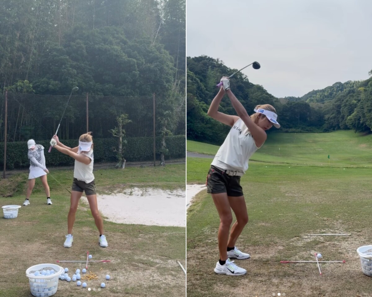 プロゴルファーの金田久美子が自身のInstagramを更新。ショット練習を行う姿を披露しました。