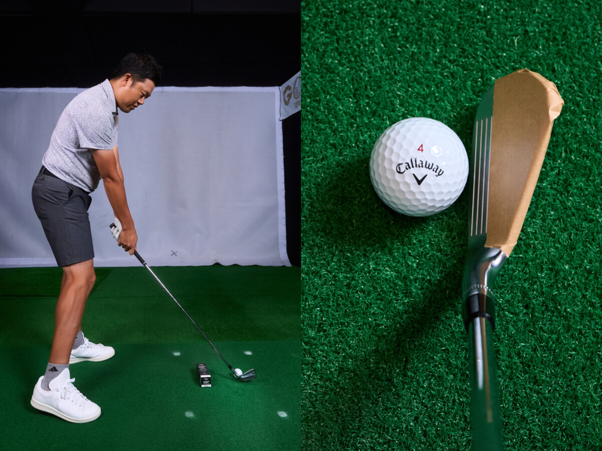フェースのトゥ側やヒール側に打点がズレてミスヒットしてしまうのも“当て感”の悪さのひとつ。これは視覚的効果を使うと簡単に直る、鍛えられます。