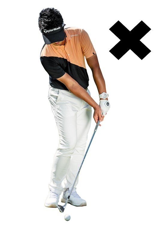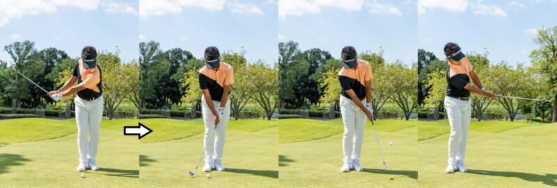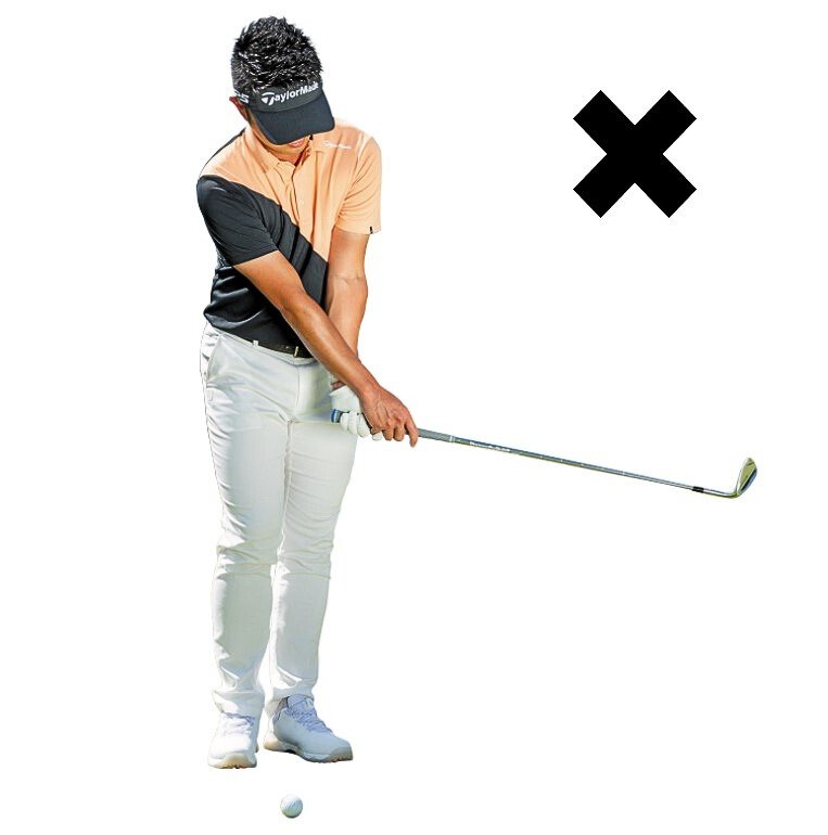右手首の角度をキープする意識が強いと、極端なハンドファーストのインパクトになってしまう