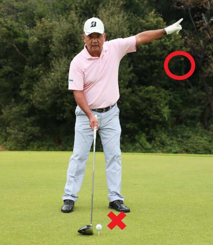 アマチュアは「ボールをよく見て打て」「ヘッドアップするな」と教わるせいか、ボールを見すぎる傾向がある。これが飛ばない原因だと寺西明はいう。