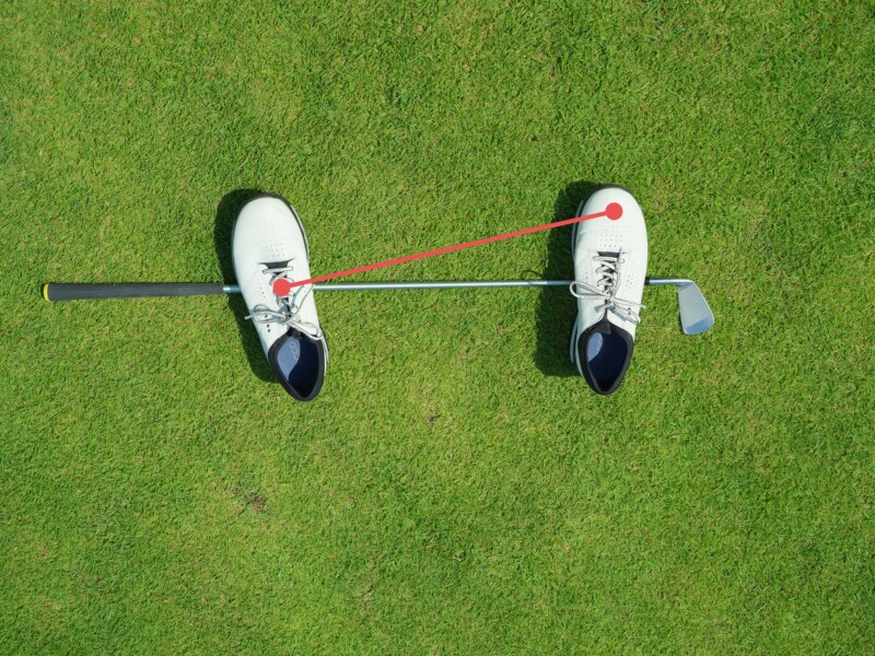 スタンスの向きはクローズスタンスだが、インパクト時に両足裏にかかる重心を結んだラインは、ターゲットに対して平行にしやすい。体が早く開いてしまう人に有効なアドレスだ。