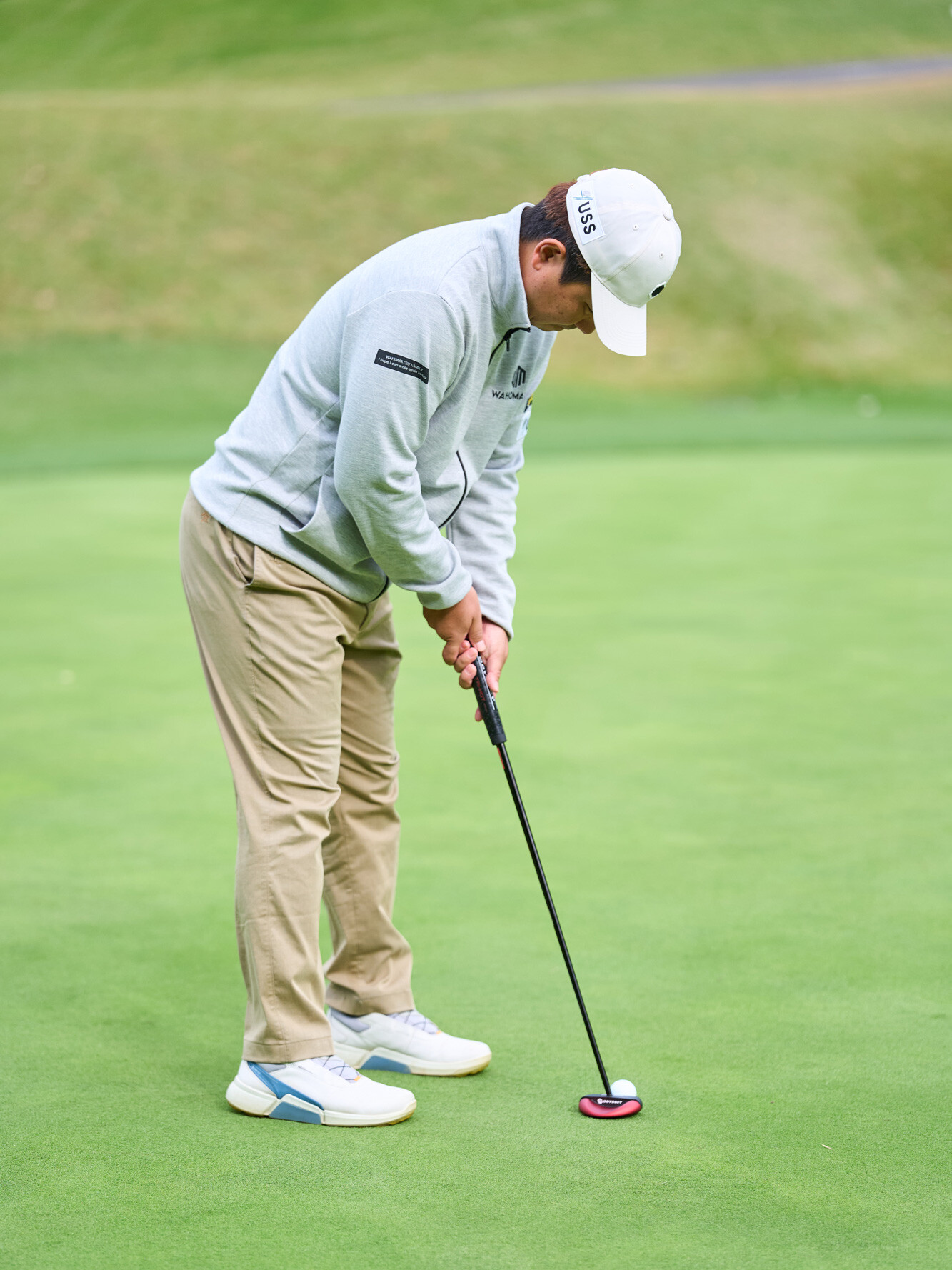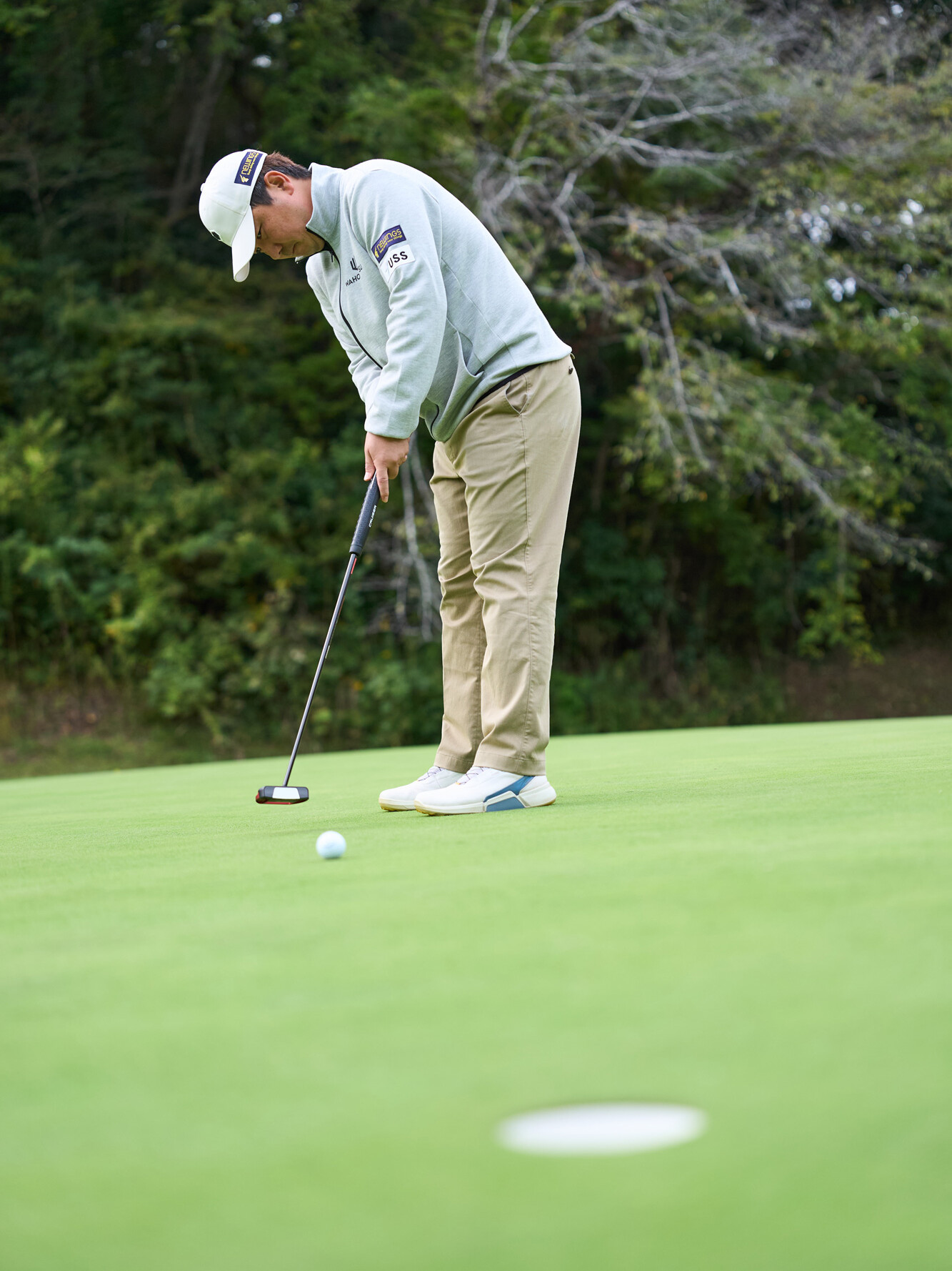 自分の意図に対してヘッドがそのままついてくる感覚があり、ストロークがとてもスムーズにできます。今までのゼロトルク系でありがちな「距離感が作りづらい」という不安は、このモデルではかなり抑えられている。フェースの溝と前寄り重心の影響で、インパクト前後の挙動が整い、エネルギーの伝わり方が素直になっているのだと思います。ボールがグリーンに“スッ”と張りつくように転がるイメージで、ラインに乗せやすく、芝目の“イヤな影響”も受けにくそうです。