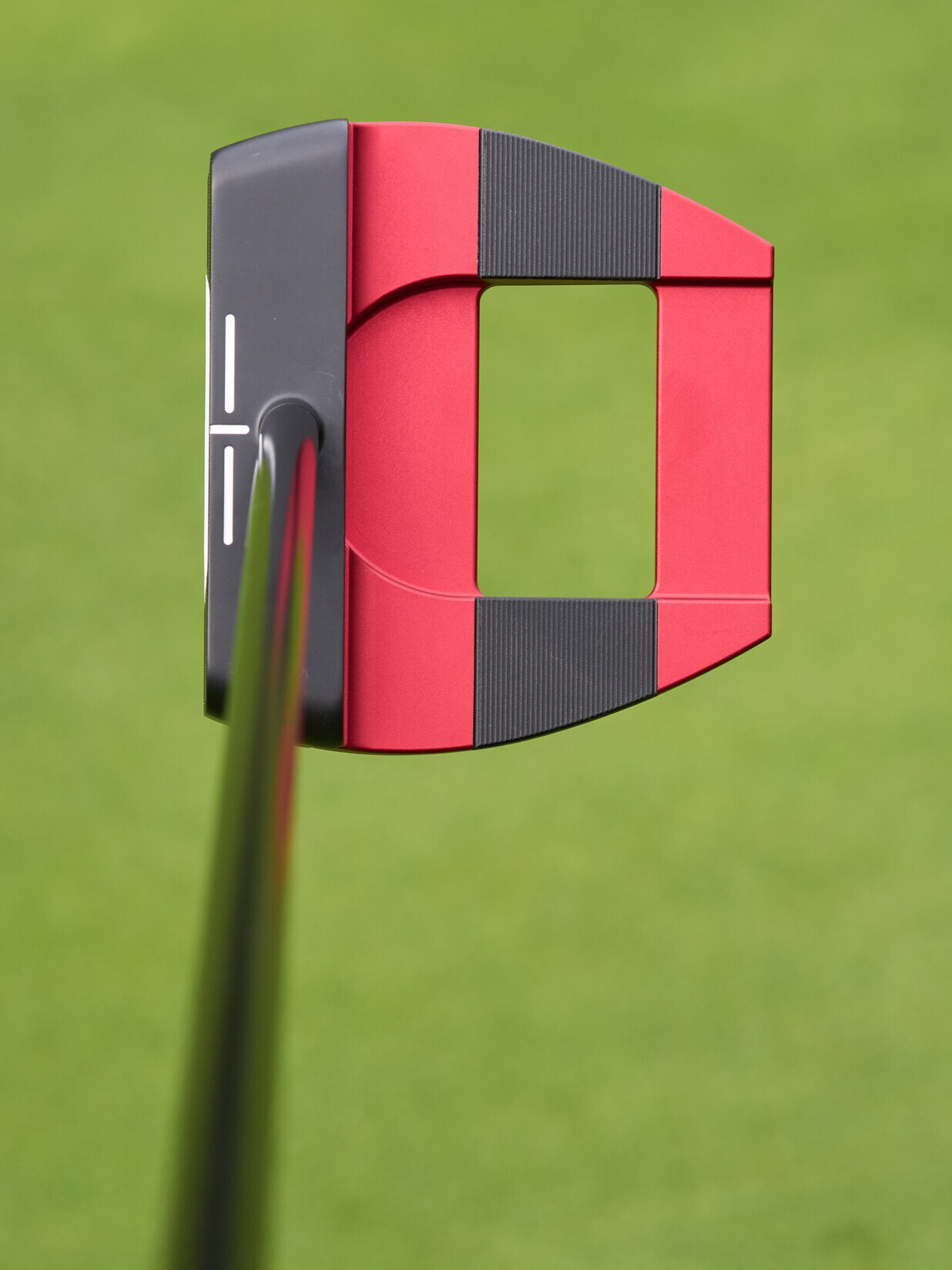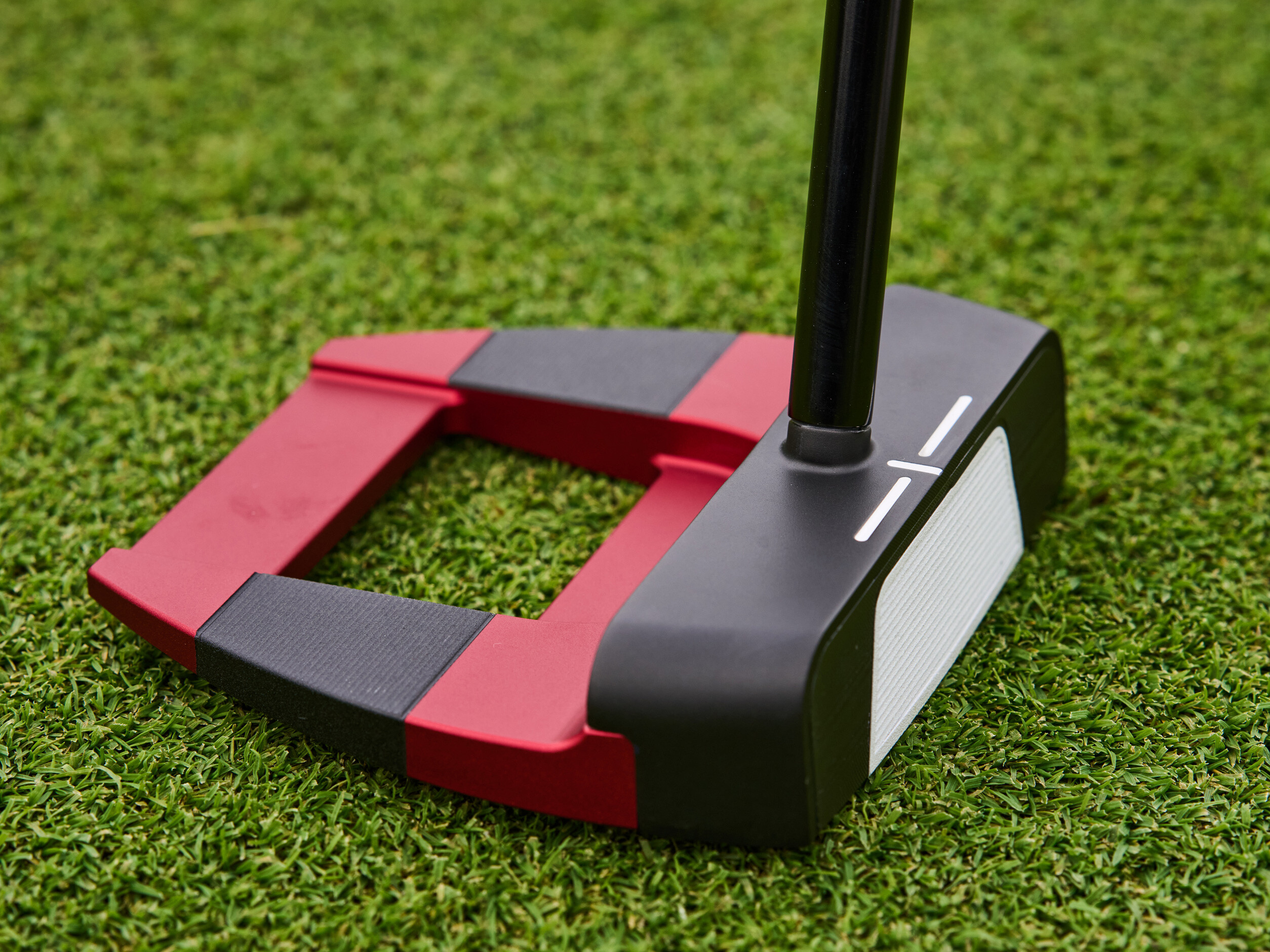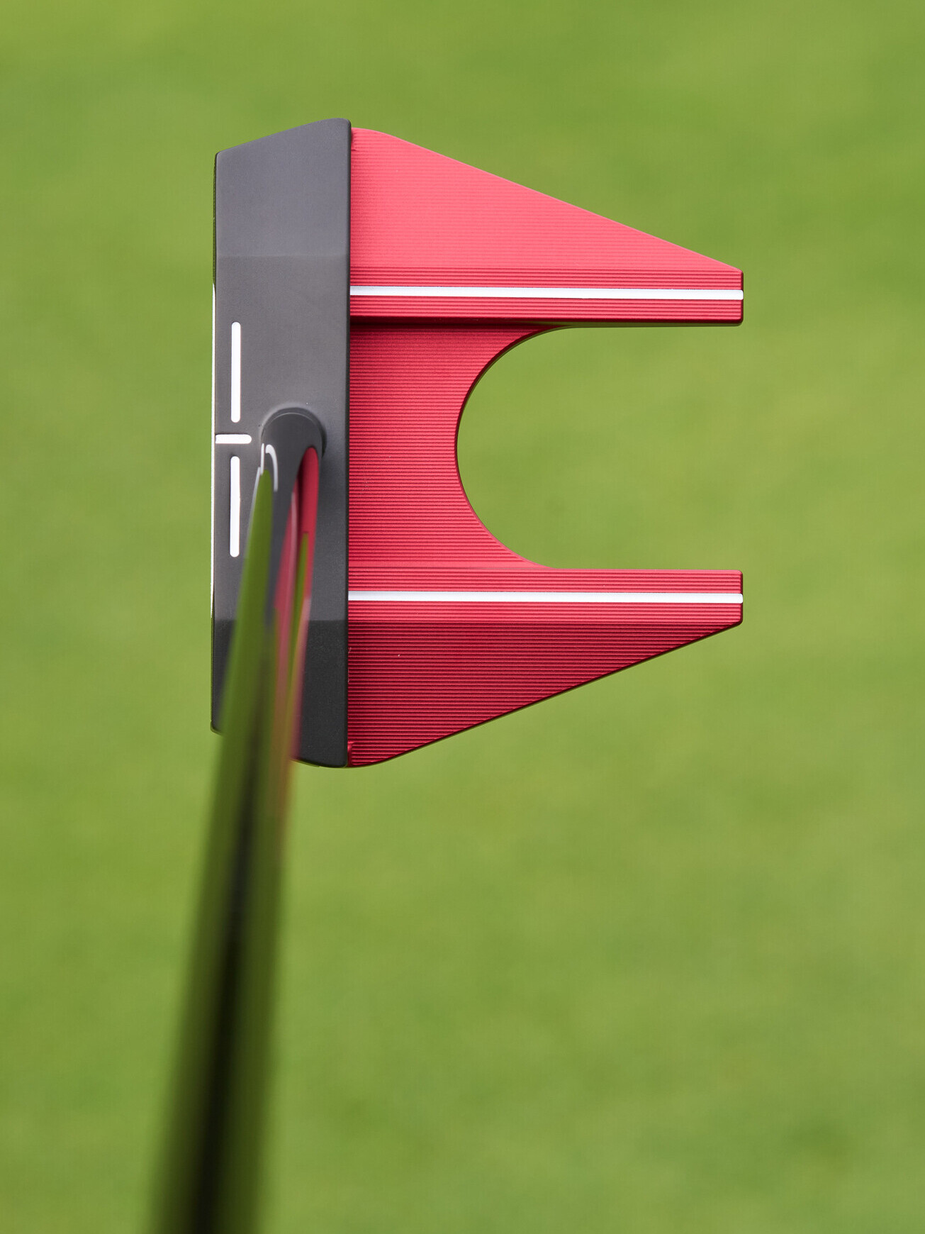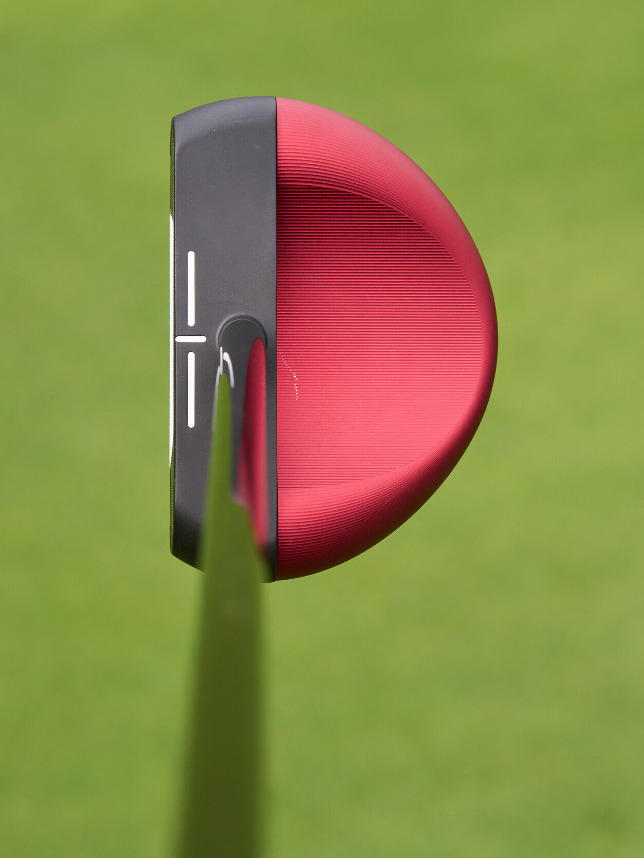 構えやすさ、アライメントの取りやすさが今までのゼロトルクパターと比較して格段にアップしていますね。シャフトとボールが前にかぶらずフェース面がしっかり見えることに加え、赤と黒のコントラストが効いていてターゲットに対してストレスなくスクエアにセットできます。アドレスで余計な情報が入らないので、目と頭の負担が減り、そのままストロークに移行しやすいのはプレーヤーとしては本当にありがたいです。