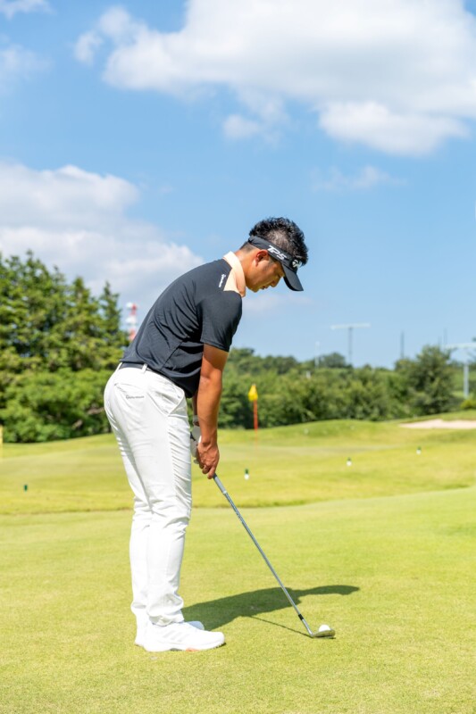 シンプルなアドレスなので1打ごとに形が変わらない。「安定して正確な構えが作れる」のもメリット