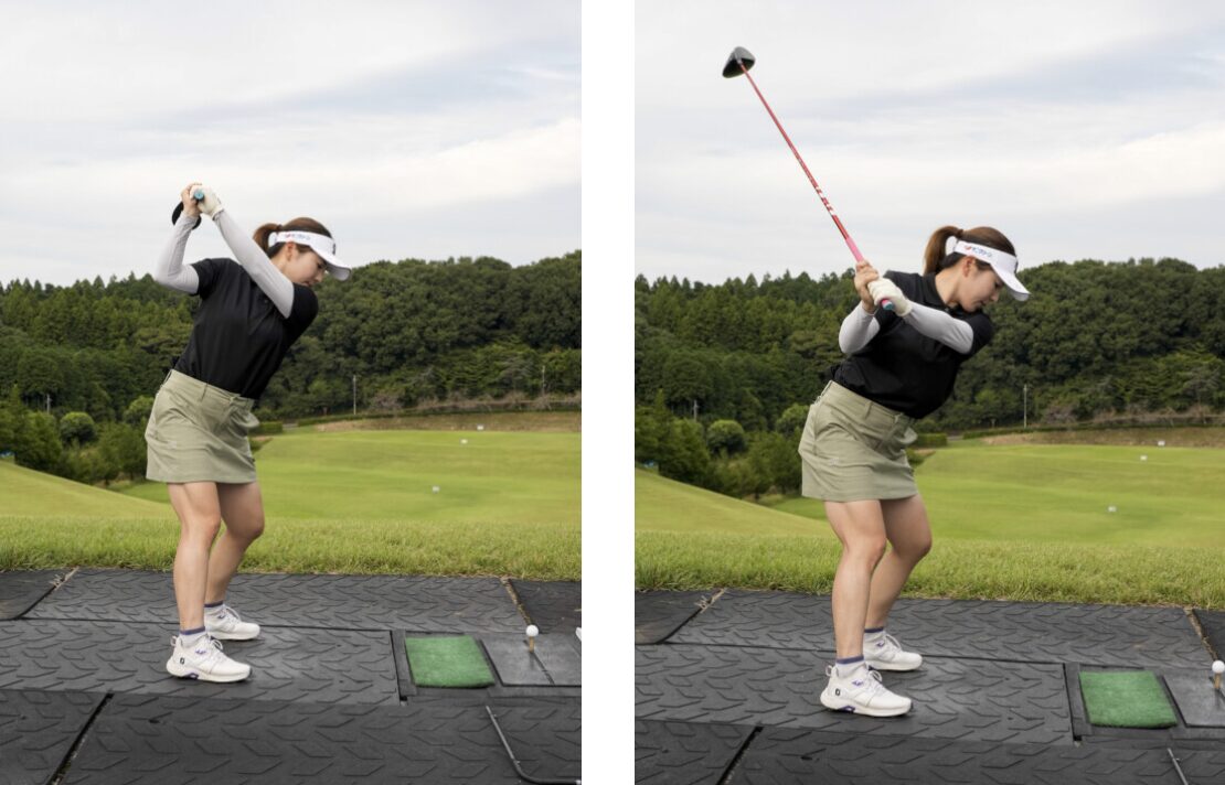 ヘッド体積の大きいドライバーは、他のクラブ以上にヘッドそのものに意識がいきがちですが、重要なのは手元に近いグリップエンドの動かし方です。力の伝わりやすい手元の動かし方を理解すれば、必然的にクラブヘッドも正しい軌道でコントロールすることができますよ。