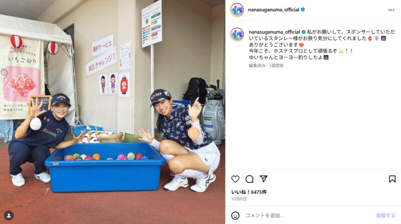 プロゴルファーの菅沼菜々が自身のInstagramを更新。河本結プロとの2ショットと“まるで縁日”のような写真を投稿しました。