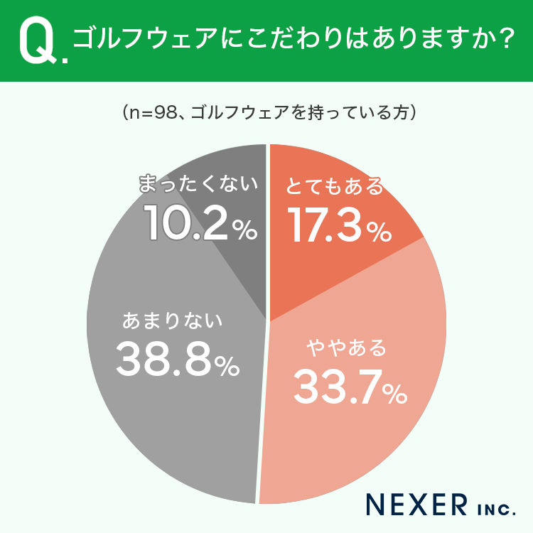 株式会社NEXERは、中古ゴルフウェア通販サイト『ストスト』と共同で、事前調査で「ゴルフをする」と回答した全国の男女117名を対象に、「ゴルフウェアの選び方」に関するアンケート調査を実施しました。