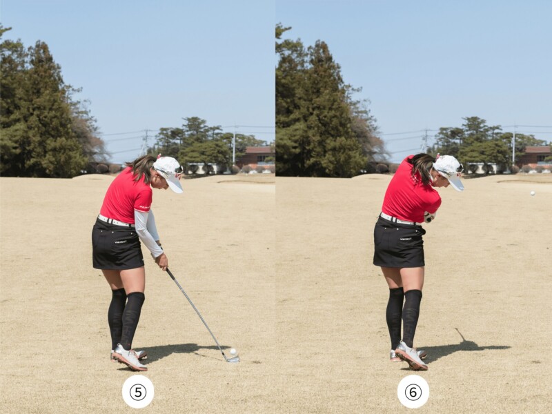 高く抜けていく軌道を意識して振り抜く(⑥)