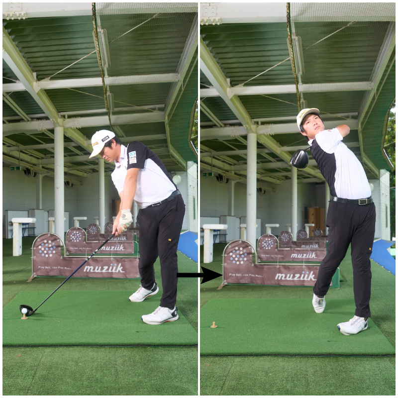 リキみとおさらば! シェフラーっぽい打ち方で飛ばす! 右足を止めずに回しながら振り抜く