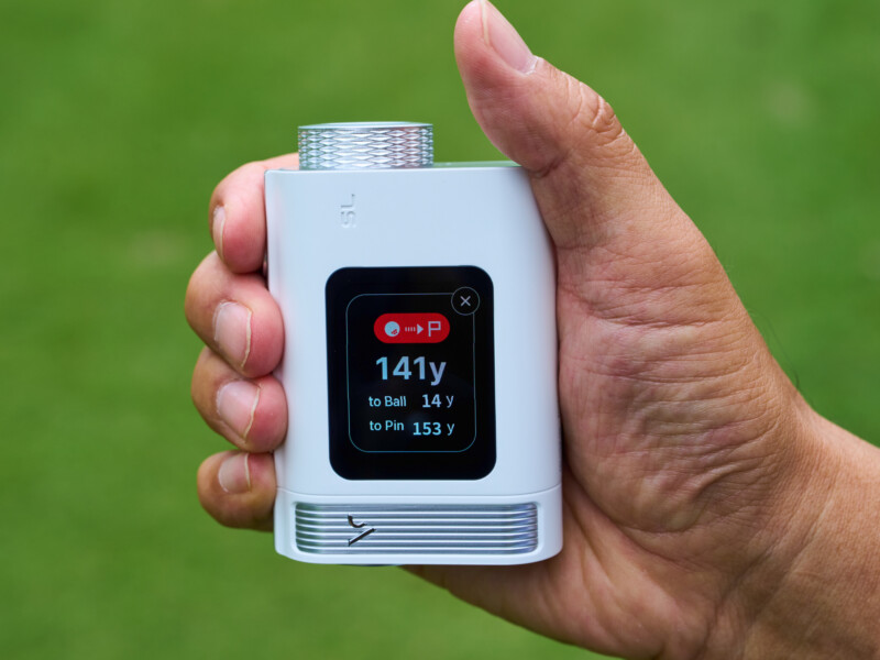 ボディ側面にタッチ式のOLEDディスプレイを備え、レーザー計測した距離を瞬時に画面表示するので、視認性が非常に高い。3点間距離計測機能「Ball to Pin」を使えば、カートから離れることなくボールとピンまでの距離を把握することも可能。GPS非搭載ながら、スマホアプリと連動させることで、時代のニーズに合う、軽量化とコストパフォーマンスにすぐれた1台に仕上がっている。