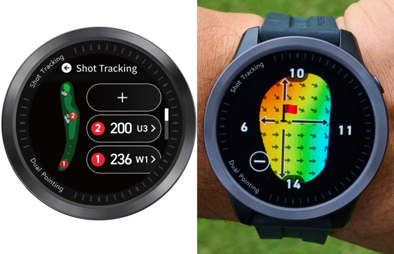 いわゆる「課金」なしでグリーンの傾斜を表示してくれるGPSウォッチはなかなかない。セカンドショット地点からグリーンの傾斜が確認できれば「どこに乗せればバーディチャンスになるか」を瞬時に判断することができるので、スコアアップに確実に貢献してくれます。画面もとても見やすいことに加え「Smart Tip」というガイド機能のおかげで、操作に迷うこともありません。