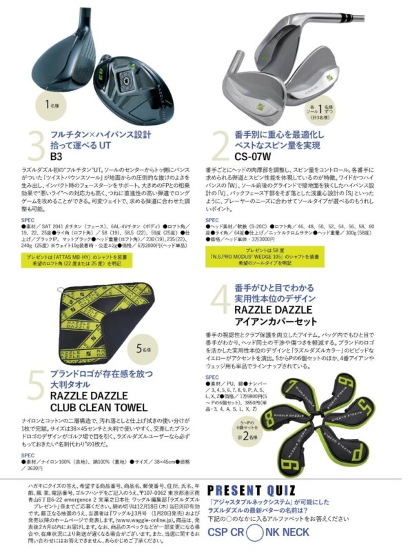 「CSP CRANK NECK」をプレゼント! 2025.12.01 【今月のプレゼント情報】 Tweet Share 情報 同じように打ってるのにミスが出る原因!ゴルフ上級者が解説 関連記事一覧 女子プロ、高級車の写真を披露!ファンからコメント殺到 2025.08.21 菊地絵理香プロが愛用!女子ツアーで見つけた話題の素... 2023.11.29 吉田優利、上田桃子との“2ショット”を満喫!「大大大リ... 2024.03.12 切れ味鋭い名刀のようなウエッジ!無骨でカッコいい【... 2024.04.01 【最新号のご紹介】 6月号 カッコいいアイアンショッ... 2022.04.21 ゴルフウェアが「2000円以下」!“しまむら”が大人ゴル... 2022.05.31 「この度…」脇元華、新しい契約を締結! 2024.08.19 「DERIT TECH(デリットテック)機能性インナーウエア... 2025.07.26