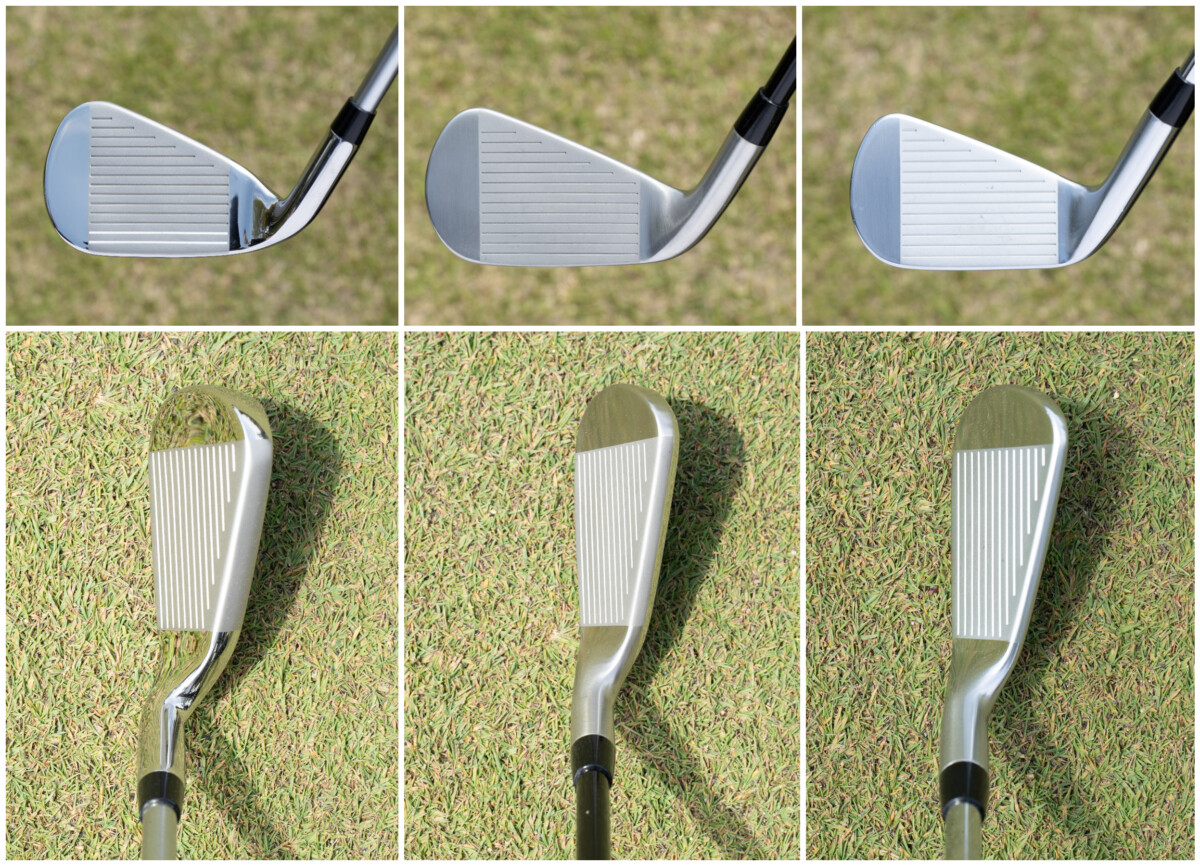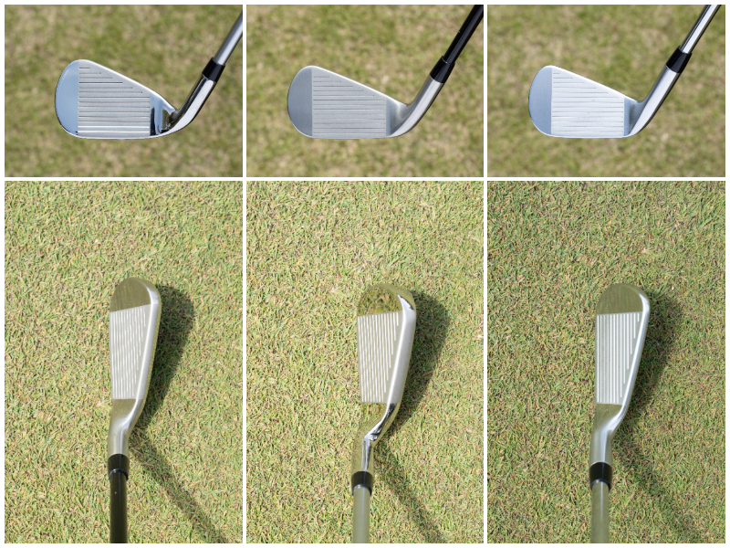 ソールが広くキャビティが深いモデルほど低重心で、マッスルバックは高重心