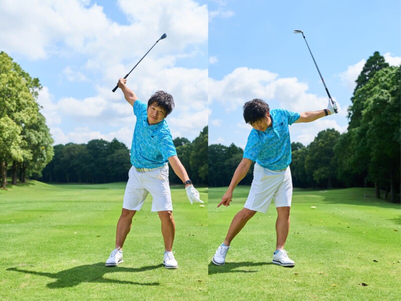 これは左足を踏み込みながらスイングする「ステップ打ち」がもっとも有効です。よく耳にするドリルだと思いますが、2つの振り子を意識しながら行なうと、普段とは別の感覚が生まれてくると思います。