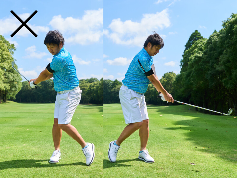 クラブが「背中」に当たるくらい大きく振る