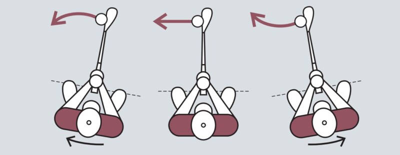 フェースを開いてスライスを打とうとすると、曲がり幅が大きくなりすぎる(右)