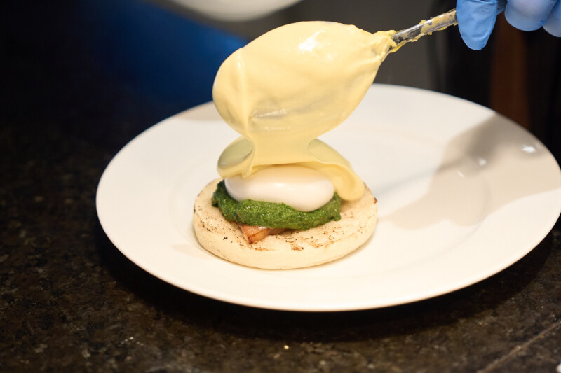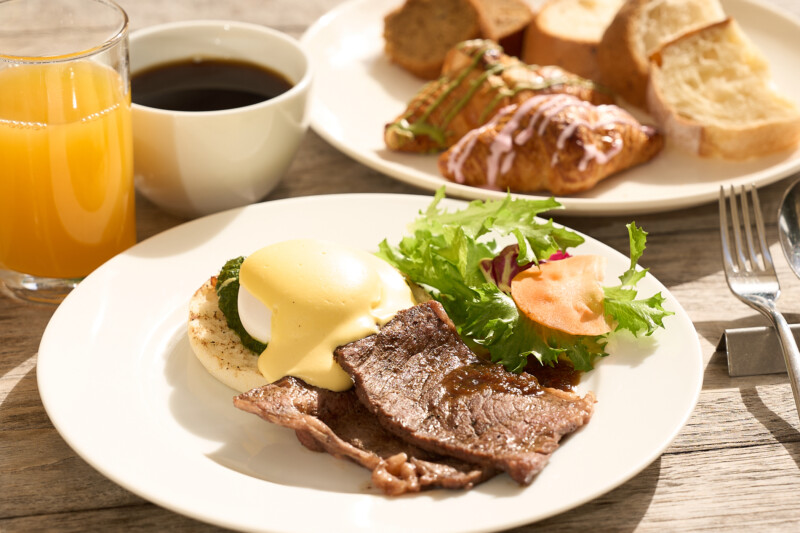 なかでも人気なのが、ライブキッチンで焼き上げるオムレツやエッグベネディクト、フレンチトーストの卵料理だ。具材を選ぶと目の前でふわりと仕上げてくれ、できたてならではの香りと食感が楽しめる。