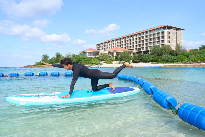 ホテルの敷地内には瀬良垣ビーチがある。そこで、SUPフィットネスやカヤックなど、アクティブに過ごす朝もおすすめだ。