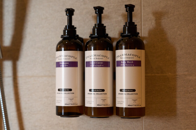 アメニティにも細かな気配りが詰まっている。シャンプー、コンディショナー、ボディウォッシュはすべてヴィーガン仕様で、アロエベラのしっとりとした使い心地が特徴。汗を流したあと、ほのかに香るハーバルな香りが疲れをやわらかく包んでくれる。