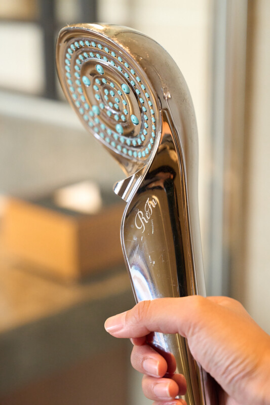 シャワーヘッドにはReFaを採用。肌当たりのよいミストと強弱のある水流で、ラウンドで酷使した脚や腰を自分でケアできる。