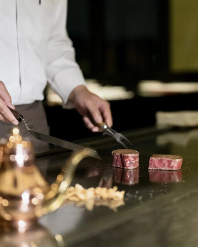 また、鉄板でじっくり焼かれたメインの黒毛和牛は柔らかく、塩やガーリック、季節野菜と合わせると旨味がぐっと引き立つ。