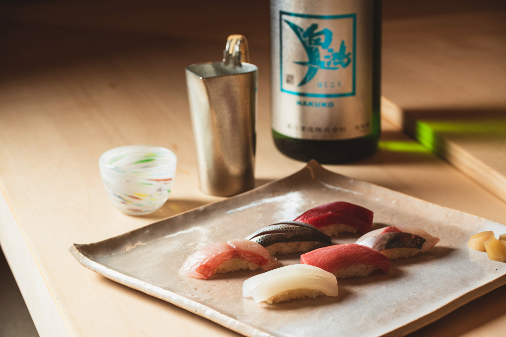 鉄板焼と並ぶホテルの名物が「シラカチ 鮨」。ネタは全国から届く旬魚と、沖縄近海ものを組み合わせている。特徴は何といっても、赤酢と土佐の塩、少量の砂糖で仕上げたまろやかなシャリ。口に入れた瞬間にふわっとほどけ、ネタとの一体感が抜群だ。