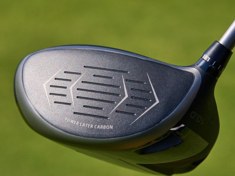 ドライバー、フェアウェイウッド、ユーティリティ、アイアンまでそろったフルラインナップは、ゴルファーのスコアメイクをトータルでサポート。今回の目玉は、もちろん新開発「パワーレイヤーカーボンフェース」。カーボンの間に特殊な層を挟み込み、たわみ量と強度を両立させることで、ボール初速と飛距離を大きく伸ばすことに成功した。