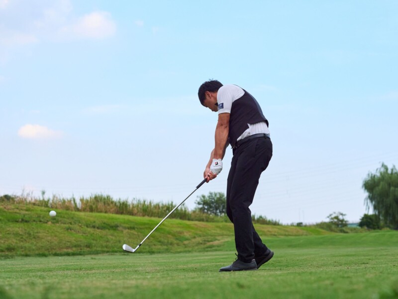 ヒール下が地面に突っかからない。また、オフセットが効いているから長めのクラブでもつかまるイメージが出て、安心して構えられる。