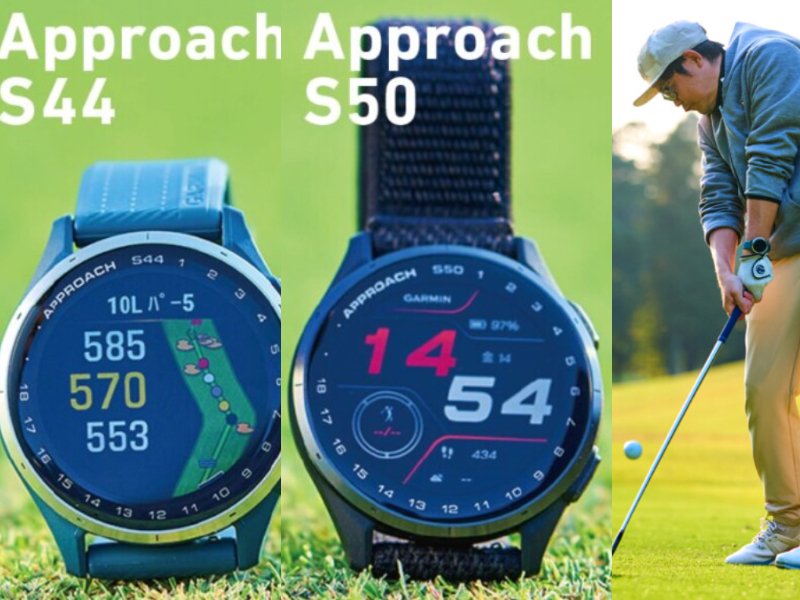 Approachシリーズの「S44」「S50」は、必要なゴルフナビ機能に加え、アプリと連動したショット統計機能を搭載。「S50」は、29gと軽量で、ゴルフ以外のスマートウォッチ機能も充実。「S44」は、コストパフォーマンスにすぐれ、ナビ機能と統計機能を中心に使うなら十分な性能をもつ