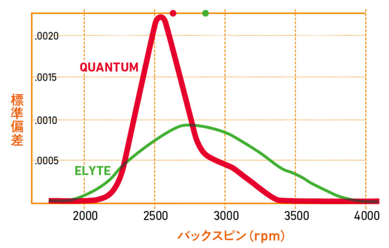 AI設計のコントロールポイントが増えたことによって、より緻密にスピン量のコントロールができるようになった。その結果、スピン量が2000回転台に集中。球筋の安定性が飛躍的に向上する。