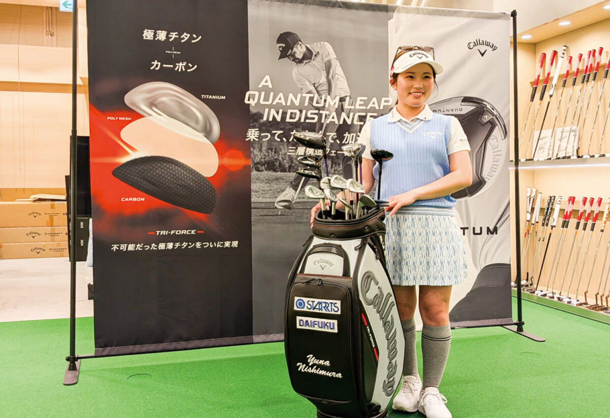 キャロウェイスタッフプレーヤーの西村優菜をゲストに迎えたトークイベントは、1月23日(金)にリニューアルオープンしたばかりの「キャロウェイ/トラヴィシュマシュー心斎橋店」で行なわれた。西村プロは2026年シーズンをともに戦う最新クラブセッティングとともに登場した。