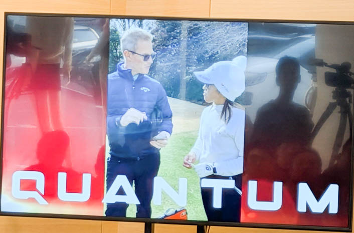 1 ⽉中旬に実施したばかりの⻄村プロ最新ドライバーフィッティングの様⼦も映像で流された。キャロウェイスタッフのアダム⽒と⻄村プロの【QUANTUM ◆◆◆ MAX】のロフト(9 度あるいは9.5 度)調整シーン。基本はスピン量が⼊り、⾶距離が安定する「9.5度」を使⽤予定だ。