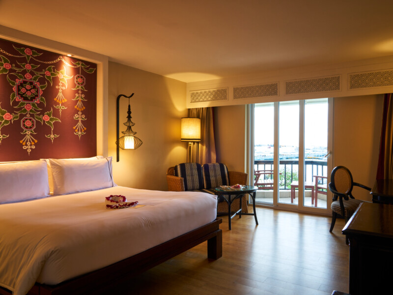 経営をしているのは、バンコクやパタヤに数軒のホテルを持つ、タイのスコソン一家。タイ資本のホテルなので、建物や部屋の造り、置かれている調度品、照明など、みな異国の地を感じさせるアジアンテイストで、欧米系列のホテルとは違う雰囲気があった。ベッドのうえに置かれていたお花のウェルカムメッセージの感動は忘れられない。
