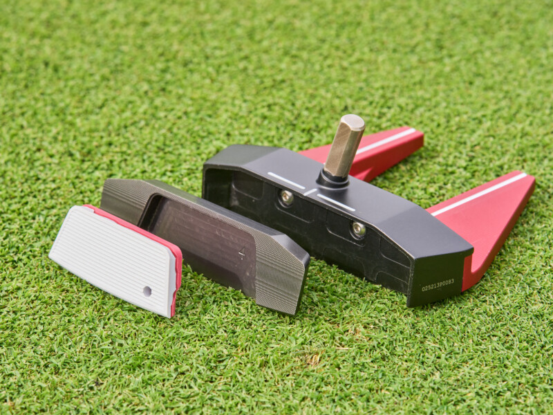 ゼロトルクでありながらもフェース付近にシャフトを装着し、一般的なパターの〝自然なアドレス感〞を保つ設計。アルミ・ステンレス・タングステンの複合構造で重量の約80%をフェース側へ集約、浅重心化することでこの構造を実現した。