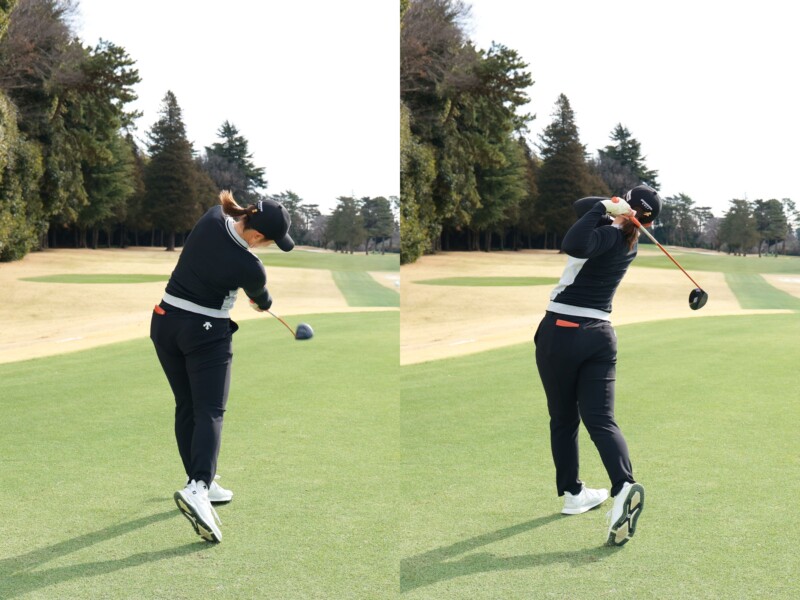 フィニッシュでの左足のめくれ具合と上体の開き具合から、しっかり左に振り切って「絶対にフックさせない」という意図も感じさせます。自身のいいところを残しながら弱点を消したスイングだからこそ、見事な復活優勝を果たせたのでしょう。